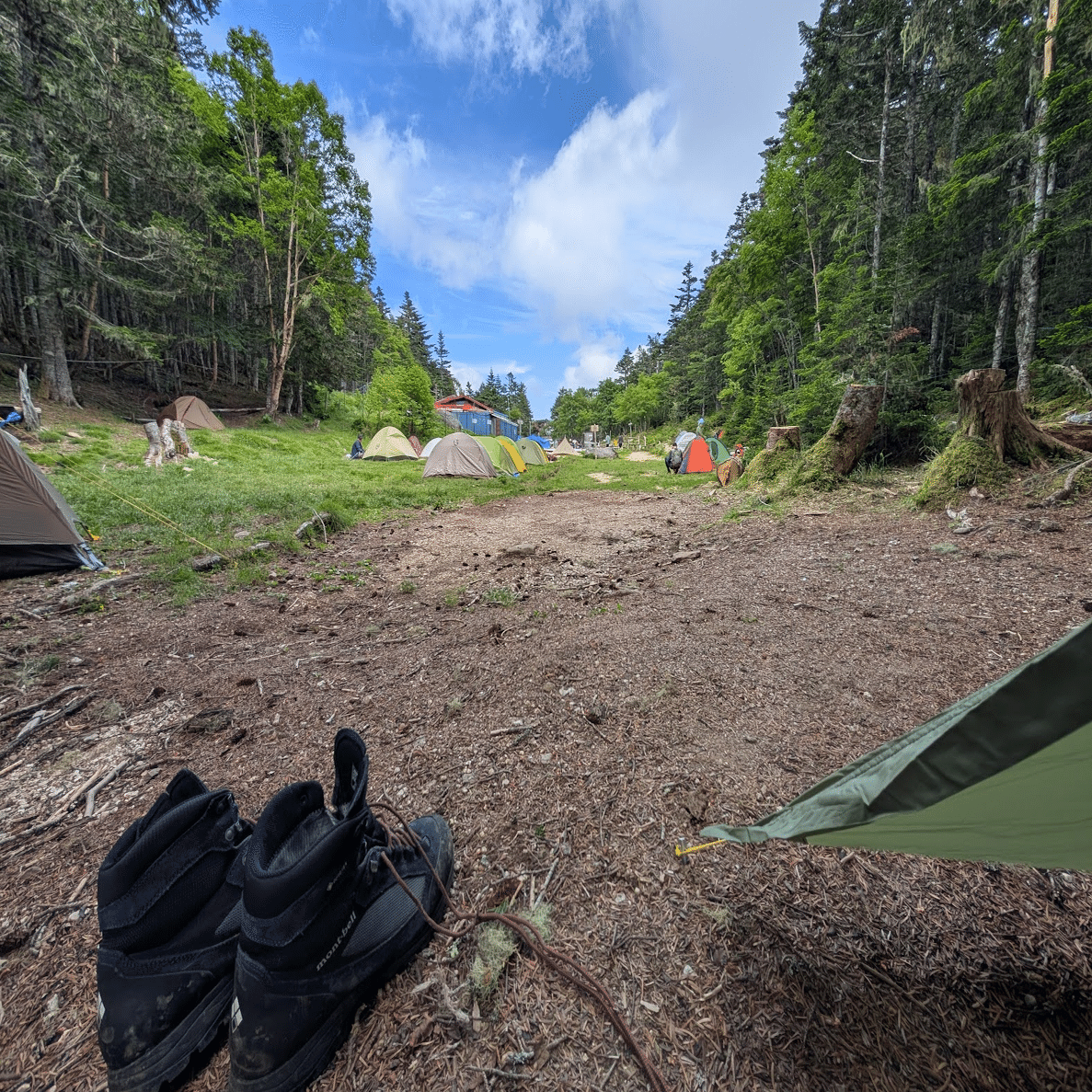 テン場は下記の写真の通りです。13時の段階ではガラガラでしたが、15時を過ぎた辺りから団体パーティが続々と入場し、通路もなくなるほどの大フィーバーでした。学生パーティのマナーが良かったことが救いでしたが、山間で静寂の星空を楽しむといった空気感ではありませんでした。