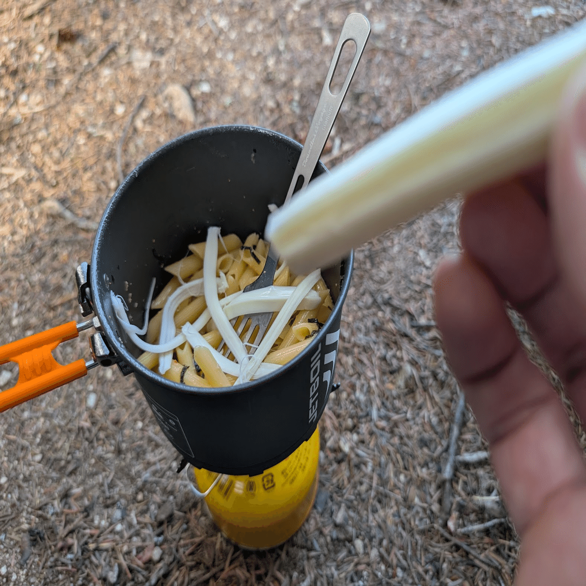 何故か、起きた直後から空腹感があったので、道の駅でおやつに買っておいた豆大福を南アルプスの天然水でボイルして、即席のお汁粉で暖を取りました。