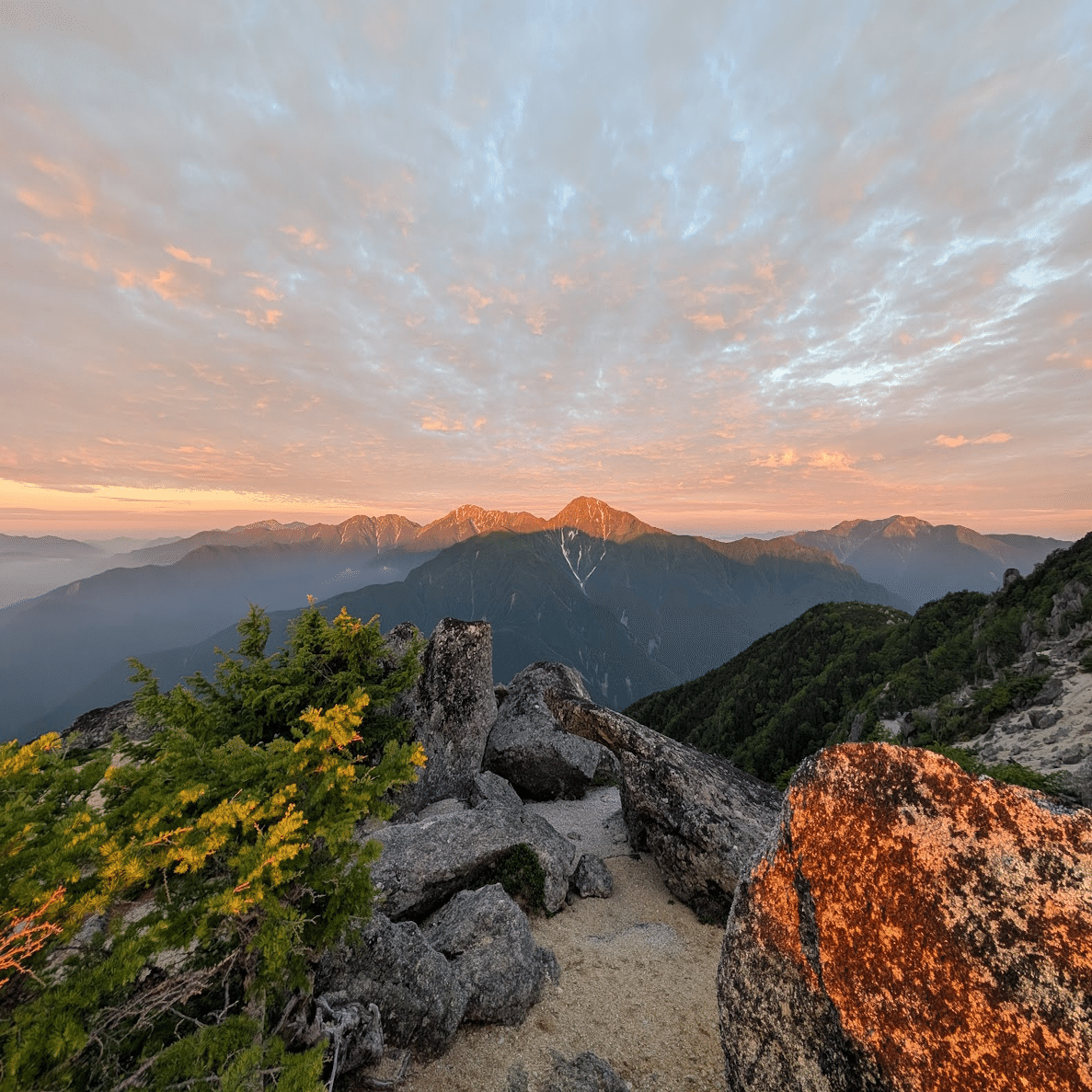 なにはともあれ、テント泊、初体験を無事に終えることができ、鳳凰三山の稜線上で朝焼けを観れたことは、この上ない感動体験となりました。2日間の消費カロリーが4,175Kcalだったことにも驚きましたが、それだけのエネルギーをかけて行くだけの価値は十分にあったように思います。
