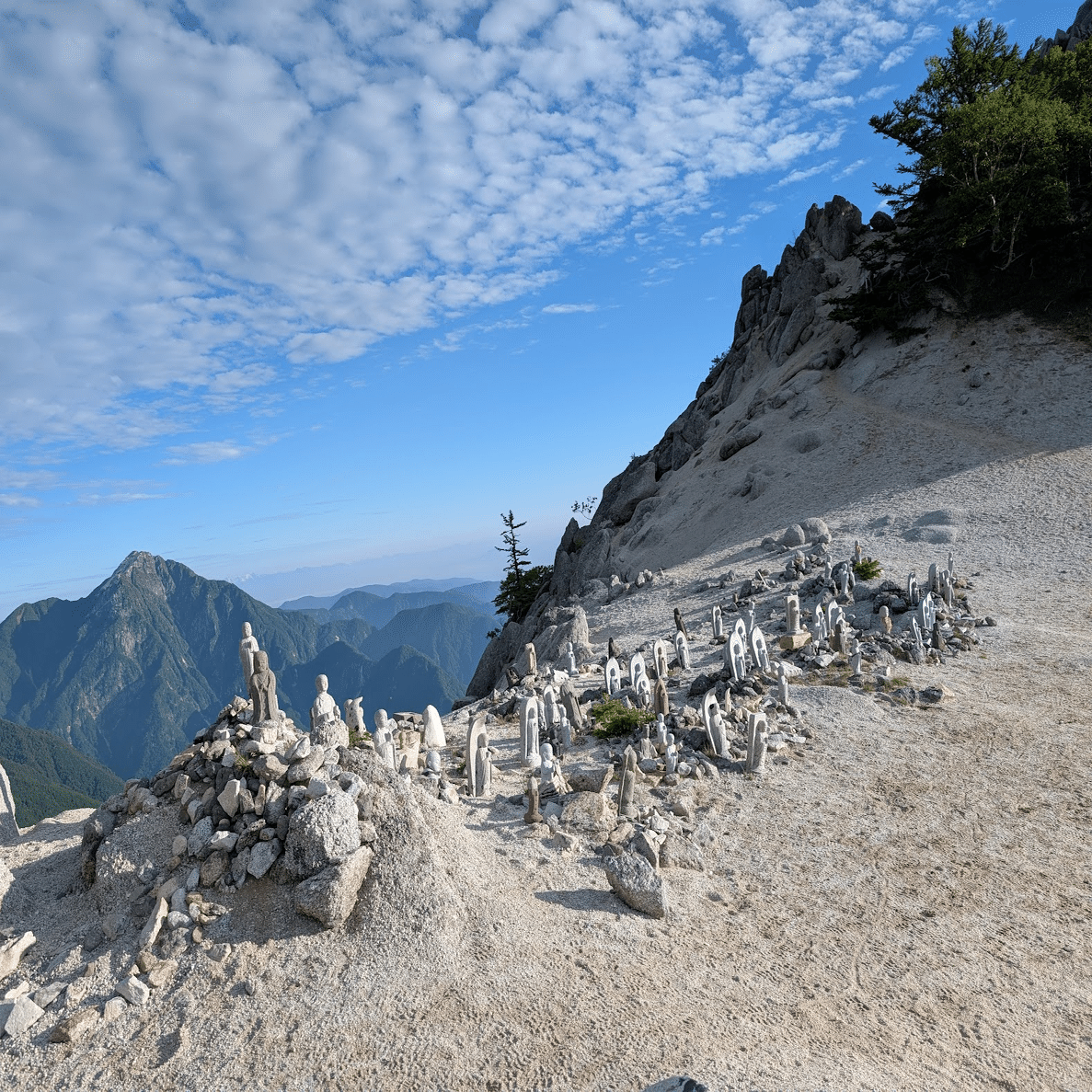 オベリスクを降りて地蔵ヶ岳の頂上付近でカップ麺とコーヒーを飲んで下山の途につきました。3時に南御室小屋を出発して、3時間半ほど経っていました。とても中身の濃い、楽しい時間でした。